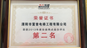 溧陽市富奎電梯工程有限公司 溧陽市富奎電梯工程有限公司是于二OO八年一月九日在原前身溧陽市電梯工程公司基礎上成立的,是專業(yè)從事電梯銷售安裝維修、保養(yǎng)的企業(yè)。是國家質(zhì)監(jiān)總局頒發(fā)的特種設備安裝、改造、維修A級安裝許可證單位。公司組織機構(gòu)實行總經(jīng)理負責制,公司下設管理部、銷售部、安裝維修部、質(zhì)安部、財務部,公司另外設十二個分公司:四川分公司、江蘇分公司、上海分公司、浙江分公司、湖南分公司、遼寧分公司、山東分...
